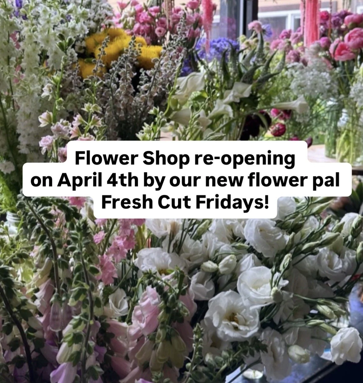 Flower Shop blooming up again on April 4th by our new flower pal Fresh Cut Fridays!!